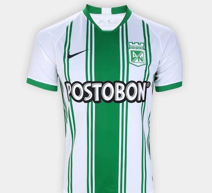 nuevo Camiseta de la 1ª equipación Atlético Nacional 2020 Esta camiseta lleva una de las plantillas actuales de Nike (ligeramente diferente en la construcción del estilo de la temporada anterior). En términos de diseño, vemos que el blanco domina, y se agrega una franja verde central más grande, acompañada de finas ratán distribuidas en pares. El cuello y los puños están pintados de verde, mientras que los elásticos posteriores están pintados de blanco. Esta vez, la parte posterior reproduce el diseño del panel frontal y utiliza el logotipo de Nike y el patrocinador negro (el cuerpo blanco es blanco) para contrastar el fondo.
