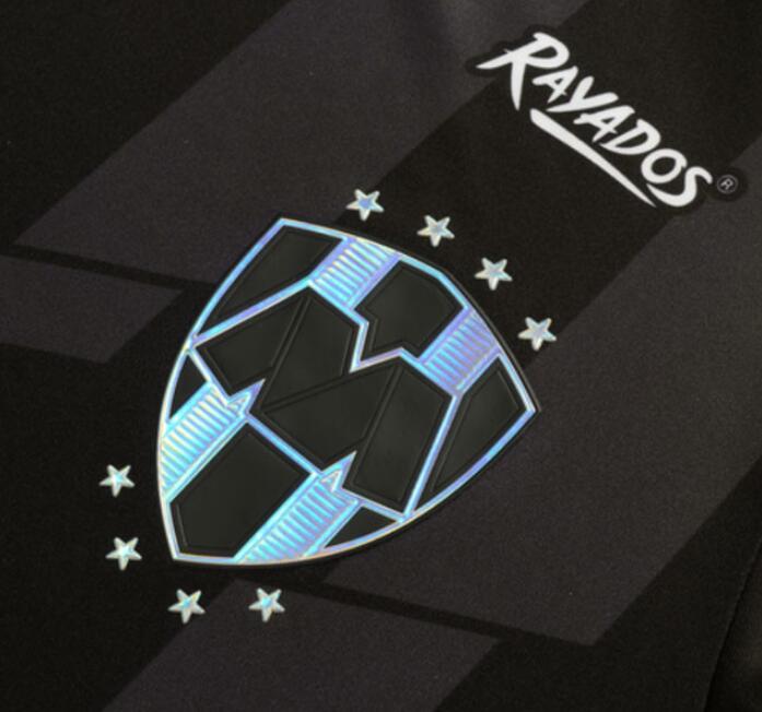 nuevo Camiseta de la 3ª equipación Monterey Realados 2020 La tercera camiseta de Rayados es de base negra y tiene un bastón gris «roto» con una forma de «M» en la parte delantera. La parte delantera del cuello tiene una «V» y un corte de solapa, similar a una supermodelo, mientras que las mangas raglán son planas con rayas en los hombros. La cubierta del club y el logotipo de PUMA están termosellados con un efecto iridiscente, mientras que los patrocinadores son sublimes en blanco. El año en que se fundó el club aparece en la parte superior, y el lema es «en la vida y en el campo».