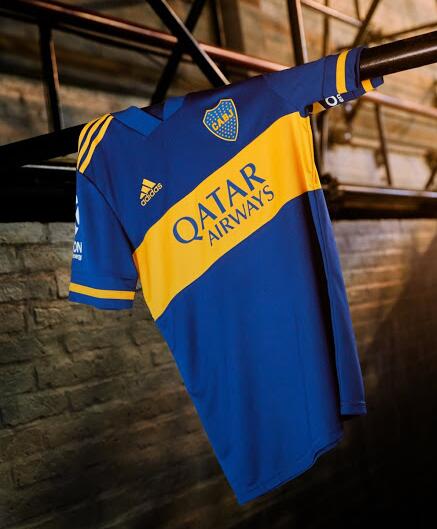 La nueva Camiseta de la 1ª equipación Boca Juniors 2020 presenta una variante del template Condivo 20 con tonos oscuros (aunque un poco más claros que la última), adaptándolo para mostrar la tradicional franja amarilla en menor tamaño que su antecesora. Los puños se decoran con el look icónico del club, mientras que la parte alta de la espalda aloja el lema “La Mitad +1”. Shorts y medias azules con branding amarillo completan el uniforme.