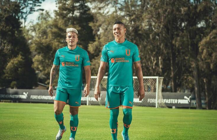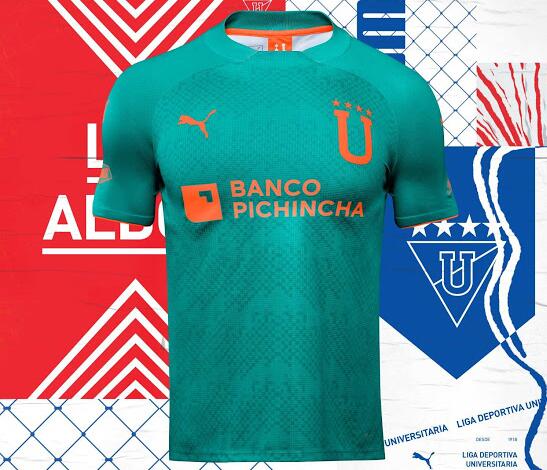 La nueva Camiseta de la 2ª equipación LDU Quito 2020 cuenta con una combinación de colores frescos. La camiseta de visitante de LDU Quito 2020 es turquesa, acompañada de detalles anaranjados en los puños, los patrocinadores y la «U» que reemplaza el escudo tradicional del club en el pecho.