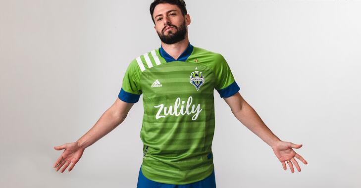 nueva Camiseta de la 1ª equipación Seattle Sounders 2020 Predominantemente ‘Rave Green’, la camiseta de fútbol local 2020 de Seattle Sounders se basa en la nueva plantilla del 25 aniversario de la MLS. Las rayas son blancas, mientras que el cuello y los puños son azules.