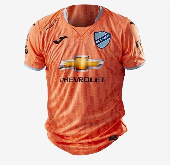 La nueva Camiseta de la 3ª equipación Club Bolívar 2020 presenta un aspecto único. Es predominantemente de color salmón con logotipos negros y ribetes celestes en el cuello y los puños de las mangas. Un sutil estampado gráfico aparece en toda la tercera camiseta de Joma Club Bolívar 2020.