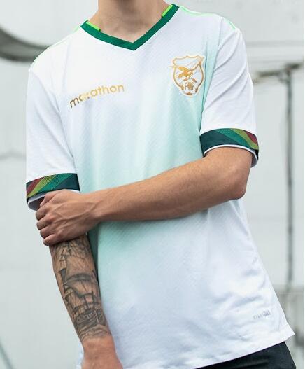 nueva Camiseta de la 2ª equipación Bolivia 2020 Principalmente blanca, la camiseta de fútbol visitante de Marathon Sports Bolivia 2020 presenta una aplicación única de los colores de la bandera en los puños de la manga. cofre.