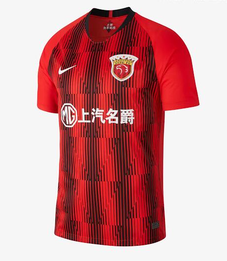 nueva Camiseta de la 1ª equipación Shanghai SIPG 2020 Predominantemente roja, la camiseta de local Nike Shanghai SIPG 2020 presenta rayas negras con un efecto geométrico en V aplicado para crear un aspecto algo ‘roto’.