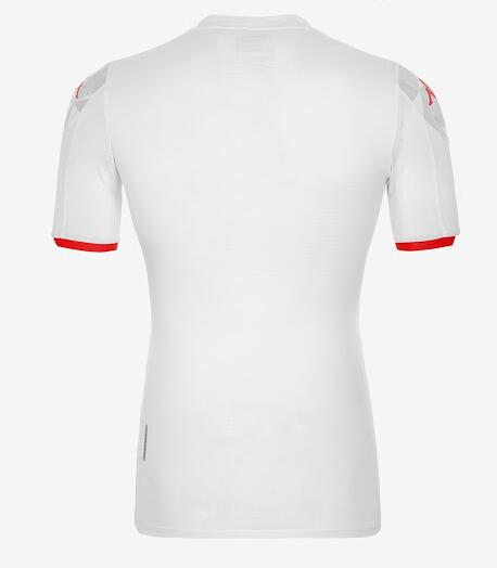 nueva Camiseta de la 1ª equipación Tunisia 2020-21 Basado en la misma plantilla vista en el tercio anterior, la camiseta de fútbol local Kappa Tunisia 2020-21 es blanca con un estampado geométrico de águila en el frente y detalles rojos en el cuello y los puños. Los logotipos también son rojos.